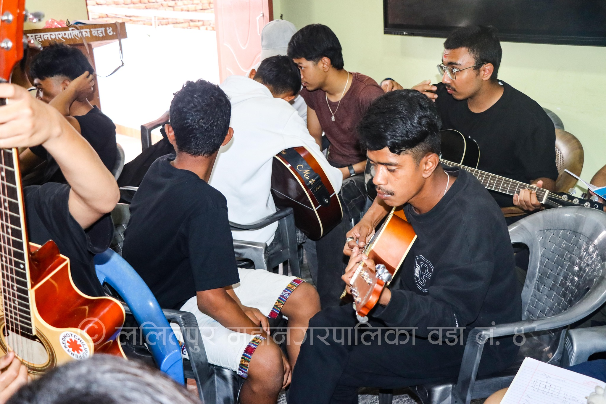 ललितपुर महानगरपालिका वडा नं. ४ काे बाल अधिकार समितिकाे आयाेजनामा वडा भित्रका बालबालिकाहरुलाइ १५ दिने गितार तालिम प्रदान गरिएकाे छ ।